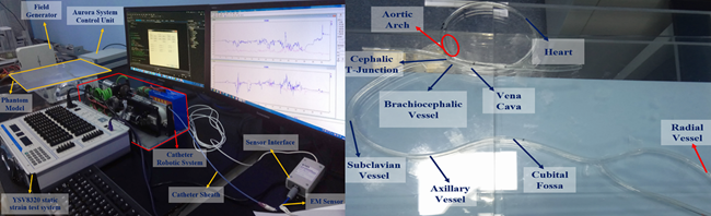 图2 实验评估系统(左:硬件系统;右:血管仿体)
