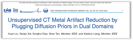 近日,中国科学院深圳先进技术研究院医工所微创中心梁晓坤副研究员、谢耀钦研究员团队与华中科技大学合作的CT金属伪影矫正研究成果,发表在国际医学成像顶刊IEEE Transactions on Medical Imaging (IEEE TMI, IF=10.6)上。